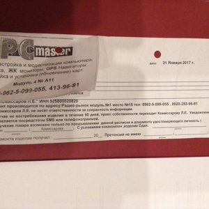 Надо было заменить шлейф экрана и почистить ноут. Заявленный PC-Master срок ремонта - максимум 30 дней. Прошел месяц - дозвонился с пятой попытки, девушка говорит, что шлейф заказали, через неделю можно забирать, всё будет по высшему разряду. Приезжаю в указанный срок, на точке никого нет, на следующий день выясняется, что ничего не готово. Затем с периодичностью в неделю-две звоню в эту контору, а на том конце провода похожие отмазки и кормление завтраками. Неоднократные приезды и отправка на почтовый адрес требований произвести работы и вернуть ноутбук в любом состоянии ничего не дали. Спустя два месяца мастер по ремонту (он же директор, кассир и менеджер по продажам) заявляет, что шлейф он поменял, но из-за того, что я вовремя не забрал ноутбук, экран перестал работать совсем, в этот день он был пьяный и неадекватный. Кроме того начиная с 30го дня ремонта я должен платить за хранение у него этого ноутбука по 100 рублей ежедневно. Оставленная мной предоплата 500 рублей на покупку шлейфа, видимо, ушла в музей поле-чудес, т.к. квитанцию об оплате, выданную его помощницей по бизнесу и, по совместительству, женой, он признавать отказался.
